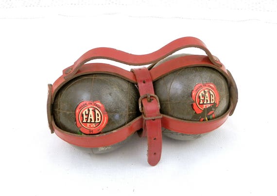 Vintage 1950s Wooden Lignum Vitae Boule / Petanque Balls Made in Italy by Fabra with Red Leather Carrying Case, French Bowling Balls by VintageDecorFrancais