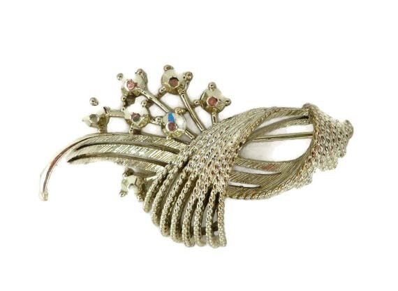 Lisner Brooch, Gold Tone Rhinestone Brooch, Vintage Flowering Leaf Pin, Gift for Her by LeesVintageJewels