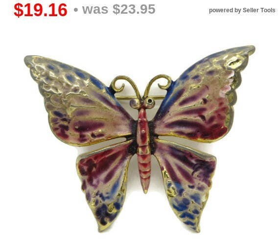 ON SALE! WEISS Enameled Butterfly Brooch, Vintage Multicolor Gold Tone Butterfly Pin Designer Signed Gift Idea by LeesVintageJewels