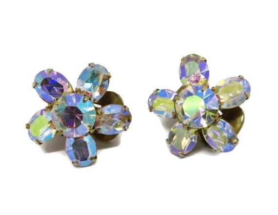 WEISS Snowflake Earrings, Vintage Rhinestone Earrings, AB Rhinestone Clip-ons, Signed Weiss Jewelry, Bridal Jewelry, Gift Idea by LeesVintageJewels