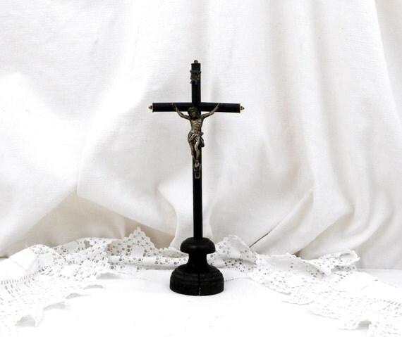 Antique French Black Wooden and Silver Plated Cross / Crucifix, Catholic, Christian, Church, Religion, Religious, Jesus, Vintage, Retro by VintageDecorFrancais