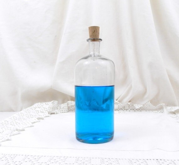 Antique French Blown Clear Glass Apothecary / Chemical Bottle With Cork, Chemist, Country Decor, Kitchen, Vase, Chemisty, Perfume, Retro by VintageDecorFrancais