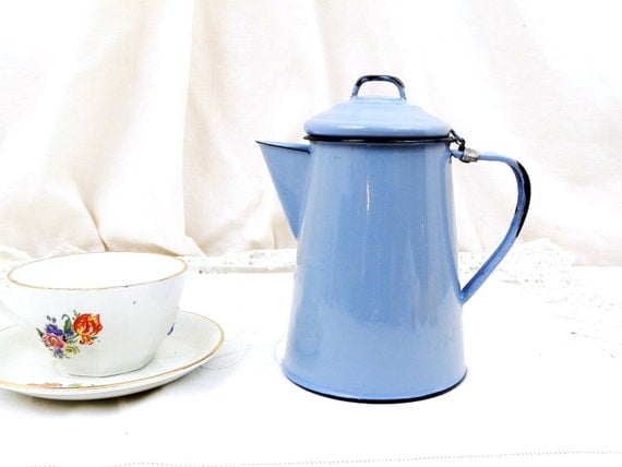Vintage French Pale Blue Enamelware Cafetière Excellent Condition, Enamel Metal Coffee Pot Sky Blue from France, Country Cottage Decor by VintageDecorFrancais