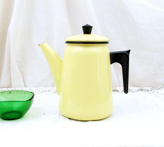 Vintage French Mid Century 1960s Buttercup Yellow Enamelware Coffee Pot, Cafetière, Retro, Vintage, Home, Kitchen, Enamel from France by VintageDecorFrancais