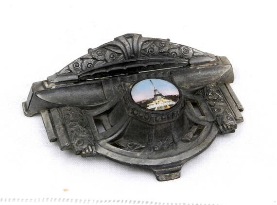 Antique Art Nouveau Eiffel Tower Ink Well and Pen Rest, Cast Metal, Souvenir of Paris, Parisian, Style, Office, Desk, Decor, Home, Interior by VintageDecorFrancais