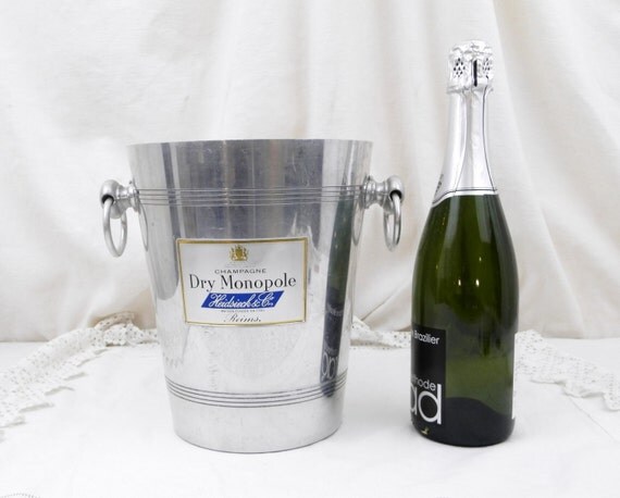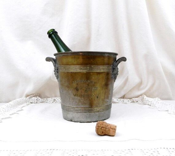 Tall Vintage French Mid Century Metal Champagne Ice Bucket / Cooler Heidsieck & Co with 2 Handles, Chateau Chic Decor, Celebration, Eparnay by VintageDecorFrancais