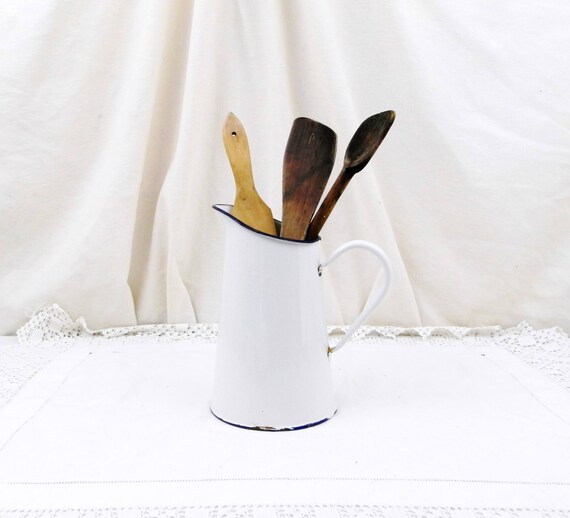 Small Antique French White Enamelware Pitcher,Chippy Enamel Jug / Vase, Cottage Kitchen, Farmhouse, French Country Decor, Rustic, Chic by VintageDecorFrancais