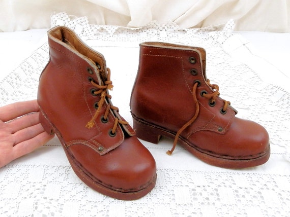 Antique French Traditional Unused Child's Leather and Wooden Shoes "Galoche", French Country Decor, Kitchen, Shabby, Cottage, Chic, Clogs by VintageDecorFrancais