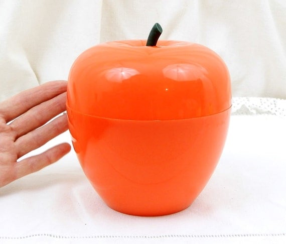 Small Vintage Mid Century Apple Shaped Red Ice Bucket, Retro French Ice Cube Holder, 1960s Design Classic, Bar Bistro Barware Orange Decor by VintageDecorFrancais