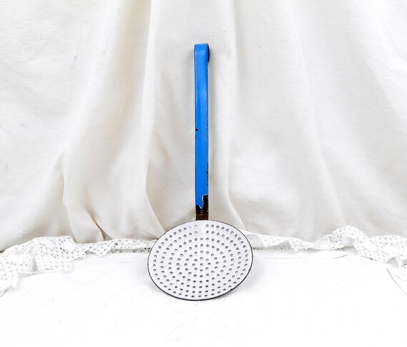 Antique French Blue and White Chippy Enamelware Strainer, French Country Decor, Kitchen, Cooking Utensil, Retro Home, Cooking, Egoutoir by VintageDecorFrancais