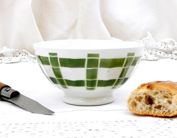 Antique French Ceramic Hand Painted Café au Lait Coffee Bowl, French Country Cottage Latte Digoin Bol, Rustic Farmhouse Decor, Digoin, by VintageDecorFrancais