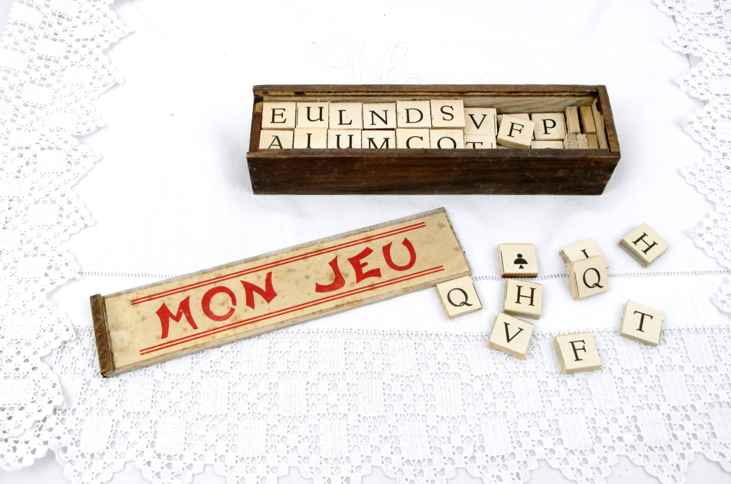 Antique French Wooden Boxed Set of 77 Wooden Letters Game "Mon Jeu", Vintage Decor, Games, Toys, Retro, Home, Interior, Scrabble, Words by VintageDecorFrancais