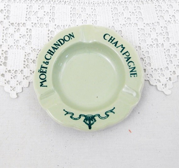 Vintage French Mid Century Mint Green Ceramic Moet & Chandon Champagne Ashtray, French Bistro Café Barware, Smoking Collectibles, Ash Tray by VintageDecorFrancais