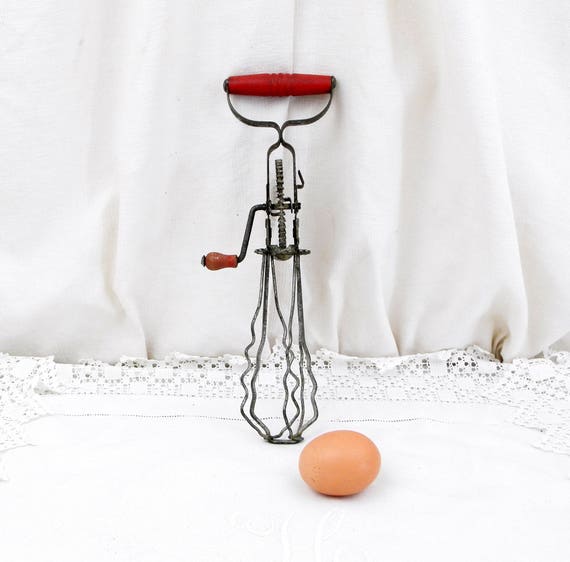Vintage French Egg Whisk made of Metal and Wood, Mechanical, with Red Wooden Handle, Kitchen Decor, Country Decor, Kitchenalia, Kitchenware by VintageDecorFrancais
