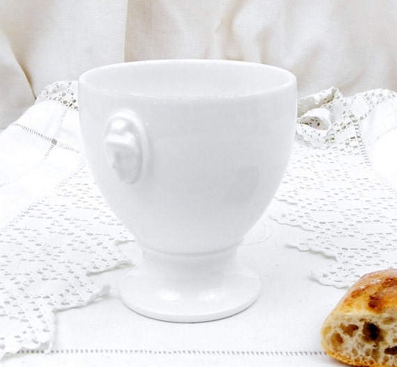 Antique French White Bone China Porcelain Bouillon Bowl with 2 Heads, French Country Decor, Rustic, Cottage, Shabby, Chateau, Chic, Vintage by VintageDecorFrancais