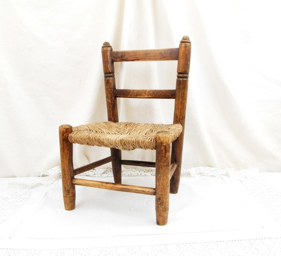 Antique French Small Wooden with Straw Seat Chair, Child Seat, Child's Furniture, Kids, Bedroom, Dolls, House, French Country Decor, Retro by VintageDecorFrancais