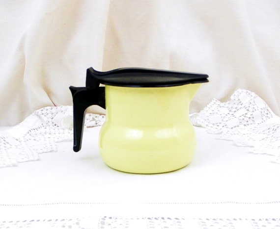 Vintage French Bright Buttercup Yellow Mid Century Enamelware Lidded Pitcher, Enamel Jug, Retro Kitchenware, Vessel, Brocante, Home, Kitchen by VintageDecorFrancais