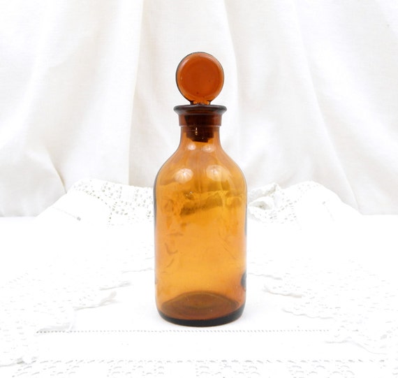 Antique French Amber Glass Medicine Apothecary Bottle with Glass Stopper, French Country Decor, Retro Parisian Chemist Pharmacy Decor France by VintageDecorFrancais