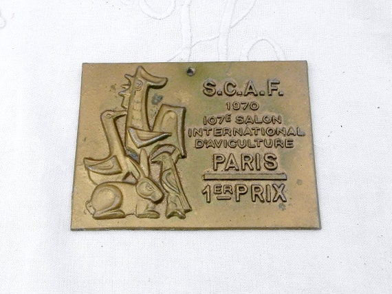 Vintage French Metal Plaque from the Paris Competition for Poultry Breeding 1st Prize, Wall Hanging, Retro Sign, Chicken Variety, Farmyard by VintageDecorFrancais
