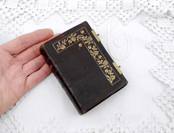 Antique French Religious "Paroissien Romain" Leather Bound Book with Gold Pattern Printed in 1885, French Decor, Mesil Booklet from France by VintageDecorFrancais