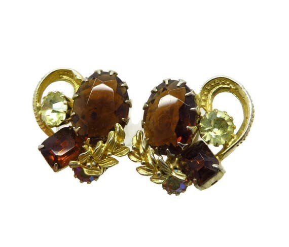 Weiss Amber Rhinestone Earrings - Vintage Amber, Champagne Rhinestone Earrings, Signed Designer Clip-ons, Gift for Her by LeesVintageJewels