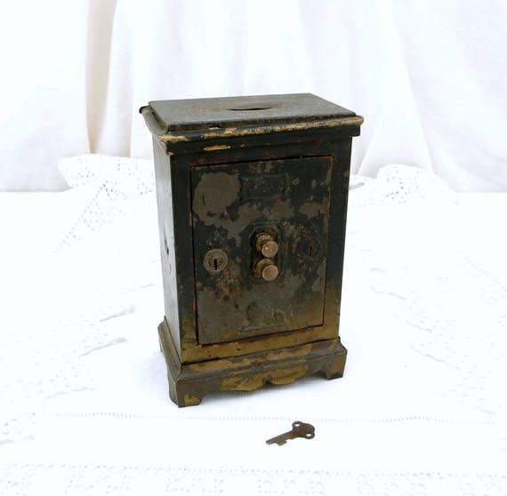 Antique Working French Replica Metal Safe " Coffre Fort" Money Box / Still Bank with Original Key, Coffer, Vintage Piggy Bank, Home Decor by VintageDecorFrancais