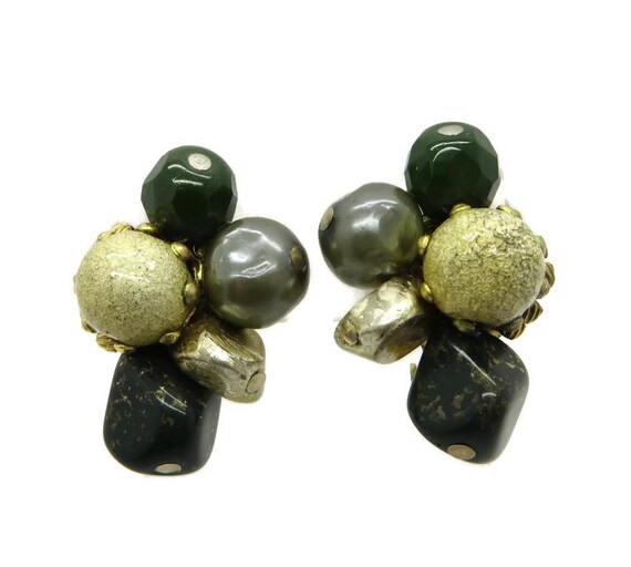 Hattie Carnegie Green Bead Earrings, Vintage Cluster Clip-on Earrings, Signed Carnegie Jewelry by LeesVintageJewels