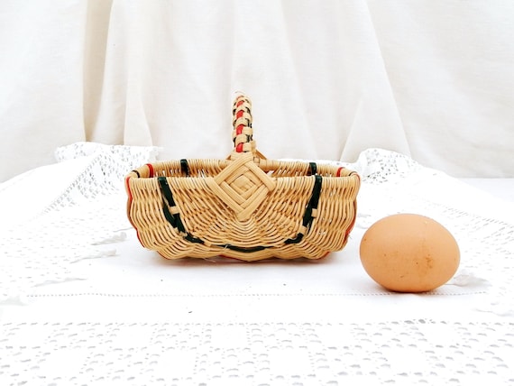 Small Vintage French Woven 1960 Child's Rattan Basket, Miniature Toy Woven Basket, Flower Arranging Accessory from France, Country Decor by VintageDecorFrancais