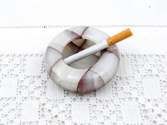 Small Vintage Carved Pale Onyx Marble Agate Stone Ashtray, Mosaic Stone, Retro, Man Cave, Semi Precious, Tobacciana, Smoking, Collection, by VintageDecorFrancais