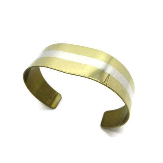 Sterling Inlay Cuff, Vintage Lillian Vernon Goldtone Cuff, Sterling Silver Inlay Bracelet, Gift for Her by LeesVintageJewels