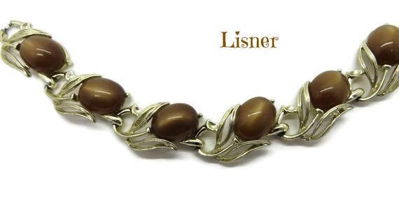 Vintage Lisner Moonglow Bracelet, Gold Tone Brown Moonglow Bracelet, Signed Designer Jewelry by LeesVintageJewels