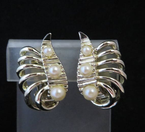 Vintage Marboux Earrings, Marcel Boucher Earrings, Goldtone Faux Pearl Earrings, Signed Designer Clip-on Earrings by LeesVintageJewels