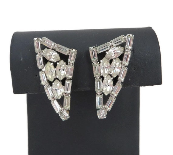 Rhinestone Earrings, Vendome Earrings, Vintage Silver Tone Triangle Clip-on Earrings, Bridal Jewelry, Formal Wear Gift Idea by LeesVintageJewels