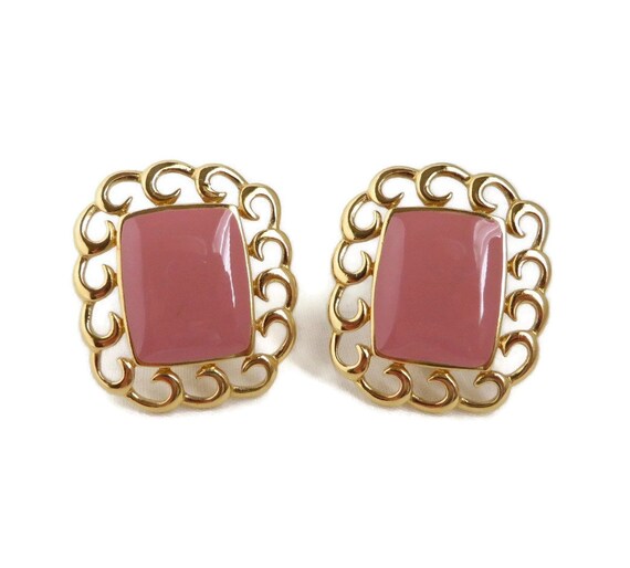 Monet Pink Gold Tone Earrings, Vintage 1970s Dusty Rose Clip-on Earrings by LeesVintageJewels