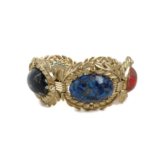 Victorian Revival Slide Bracelet, unsigned Goldette, Rhinestones, Cameo, Bee, Florals, Vintage Jewelry Jewellry by VintageVogueTreasure