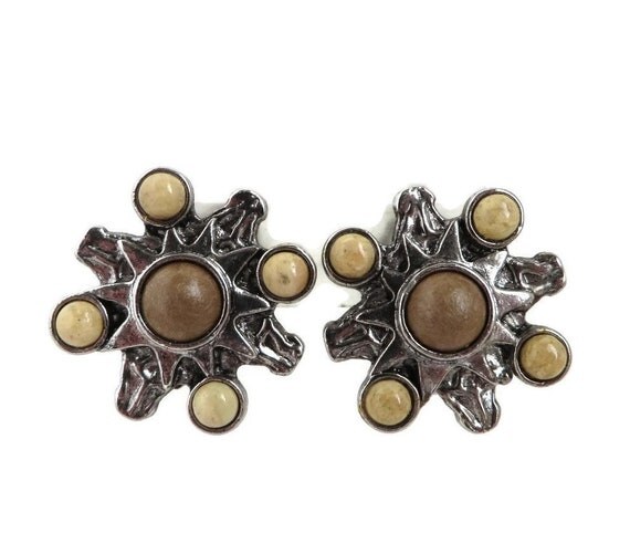 Vintage Earrings, Silver Tone Brown Bead Earrings, Signed Robert Rose Clip-on Earrings, 70s Retro Jewelry by LeesVintageJewels