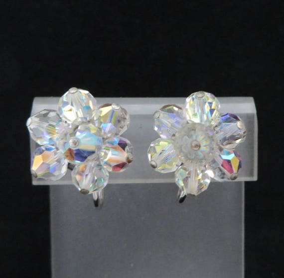 Vintage Crystal Flower Earrings | Sil...