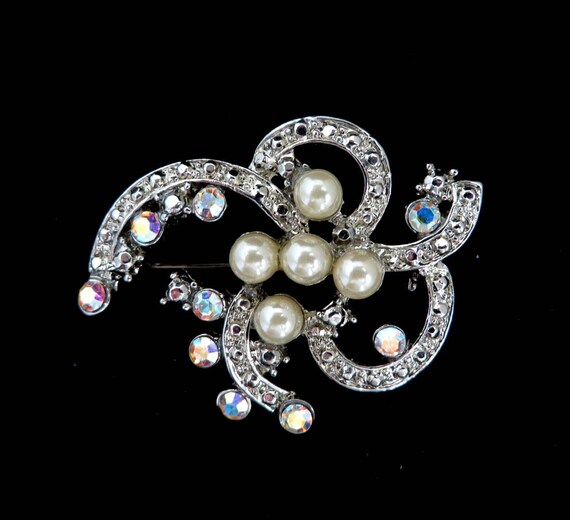 Vintage AB Rhinestone Faux Pearl Broo...