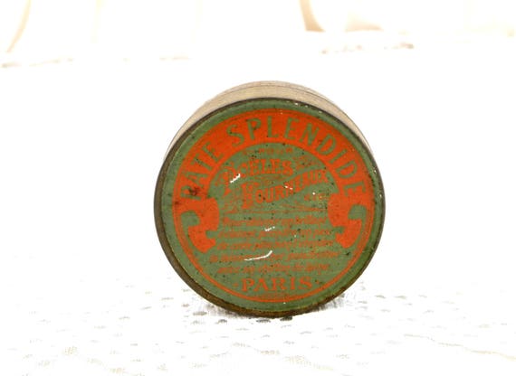 Antique French Metal Tin with Belle Epoque Graphics in Orange and Green Range Paste "Pate Splendide" from Paris, Polish Box from France by VintageDecorFrancais