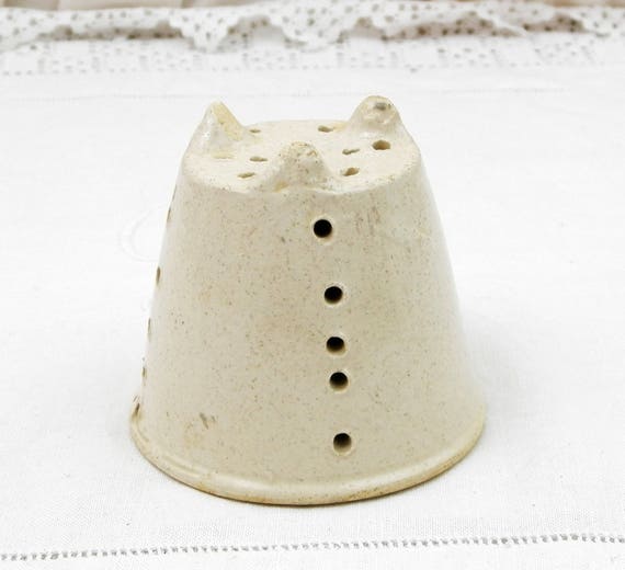 Small Antique French Stoneware Cheese Faisselle Straining Pot, Pottery Dairy Cream Cheese Drainer from France, Retro Cookware Kitchen Mold by VintageDecorFrancais