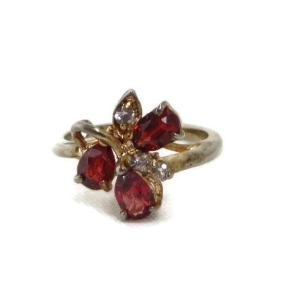 Faux Garnet Cocktail Ring, Vintage Gold Plated Sterling Silver Multi Stone Ring, Size 6.5 by LeesVintageJewels