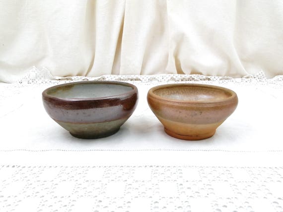2 Antique Primitive French Rillette du Mans Stoneware Ceramic Bowls, Rustic Pottery Paté Dishes from Rural France, Country Kitchen Decor by VintageDecorFrancais