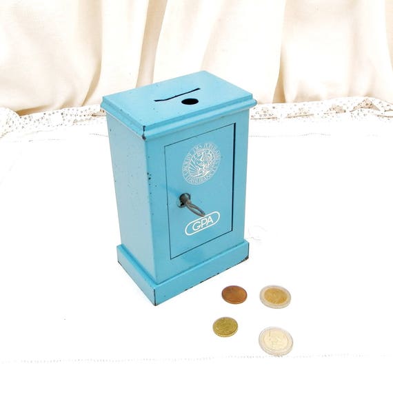 Vintage French Replica Blue Metal Cash Safe " Coffre Fort" Coin Bank / Still Bank/ Piggy Bank, Money Box from France Promotional Gift GPA by VintageDecorFrancais