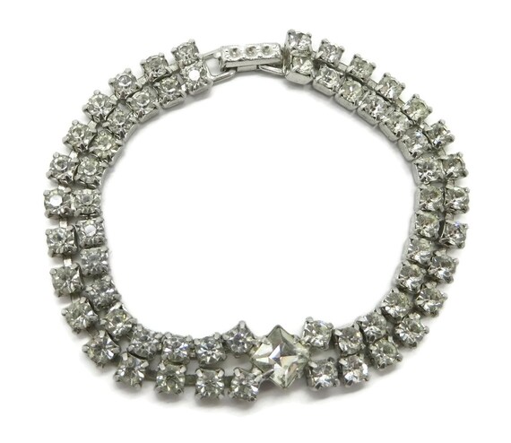 Vintage Rhinestone Tennis Bracelet | Signed Kramer Jewelry | Double Row Rhinestone | Bridal Jewelry by LeesVintageJewels