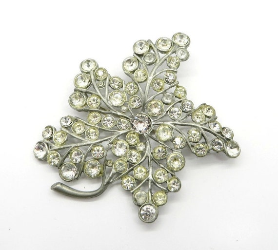 Rhinestone Large Leaf Brooch, Vintage Silver Tone Rhinestone Leaf Pin by LeesVintageJewels