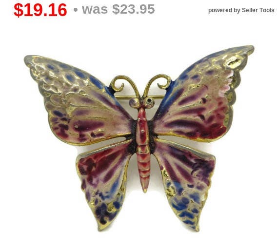 ON SALE! WEISS Enameled Butterfly Brooch, Vintage Multicolor Gold Tone Butterfly Pin by LeesVintageJewels