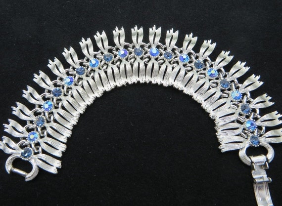 Lisner Blue AB Rhinestone Bracelet, Estate Vintage Egyptian Revival Silver Tone Bracelet by LeesVintageJewels