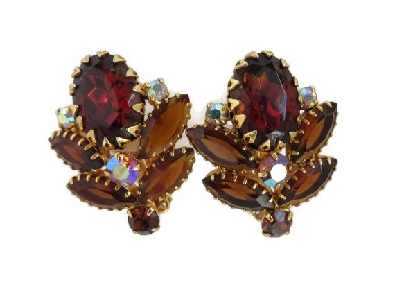 Juliana D&E Amber Earrings, Vintage AB Rhinestones, Gold Tone Clips, Book Piece, Verified, Anniversary Gift, Birthday Gift, Bridesmaid Gift by LeesVintageJewels