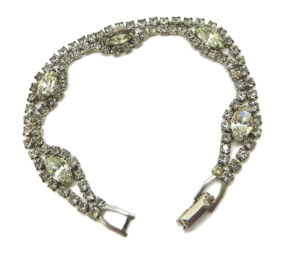 Vintage Weiss Signed Double Row Chaton Marquise Rhinestone Bracelet by LeesVintageJewels