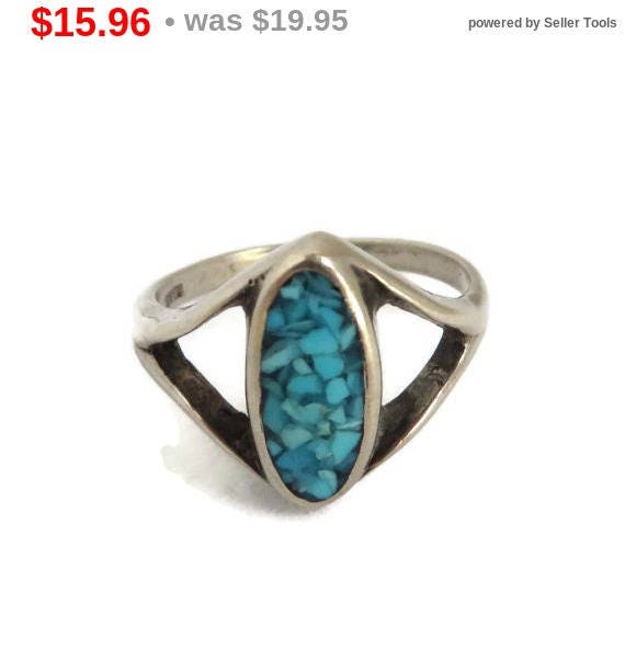ON SALE! Vintage Crushed Turquoise Sterling Silver Ring, Size 6 by LeesVintageJewels